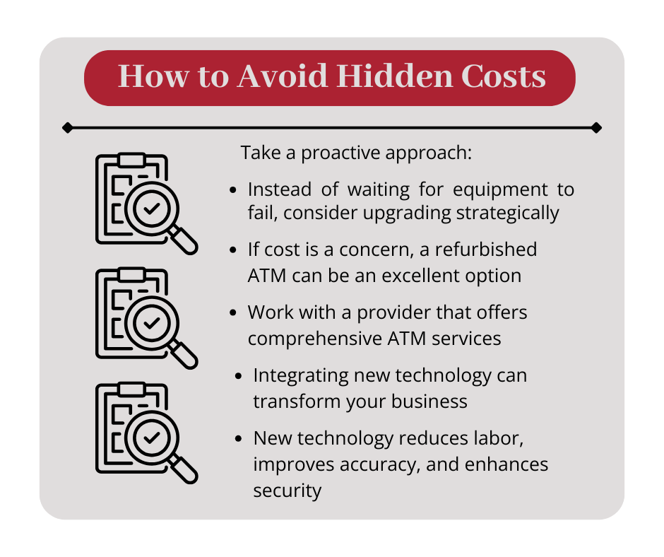 But aging ATM equipment often comes with hidden costs that build up over time. These costs don’t always show up immediately, which makes them easy to overlook. For retailers and small financial institutions, understanding these risks is the first step toward making a more cost-effective, future-proof decision.