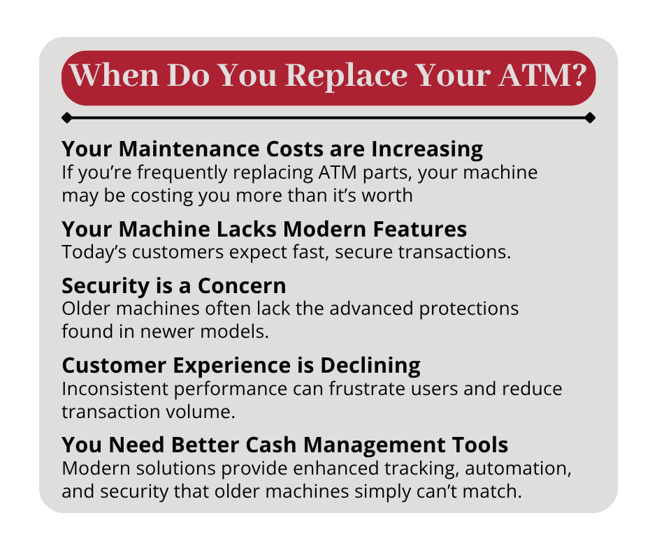 It’s not always obvious when an ATM has reached the end of its lifecycle. However, there are several clear indicators that it’s time to consider a change.