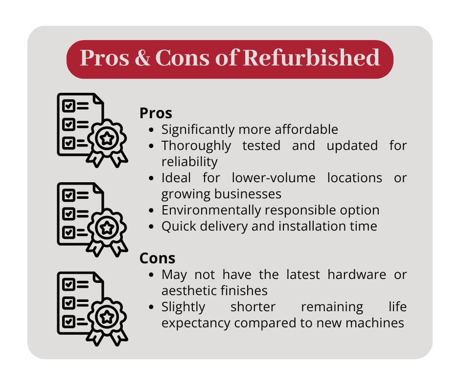 - Choose a refurbished ATM if you’re working with a limited budget, don’t need high-end features, or want an eco-friendly solution that still delivers strong performance.